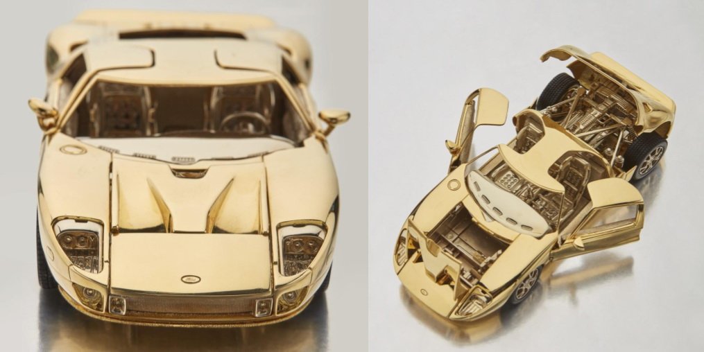 Πρόκειται για ένα Ford GT του 2006 σε κλίμακα 1:25, αλλά κατασκευασμένο από μασίφ χρυσό 18 καρατίων. Ευτυχώς, ξέφυγε από τον «Ριχάρδο», οπότε μπορείτε να το αποκτήσετε εσείς, «χτυπώντας» το στη διαδικτυακή δημοπρασία του οίκου Sotheby’s. Απλά, λάβετε υπόψη ότι η τελική τιμή πώλησής του εκτιμάται κάπου ανάμεσα στα 25.000 και τα 35.000 ευρώ.