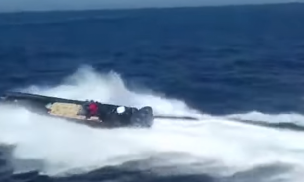 Ένα ταχύπλοο και ένα ελικόπτερο της ισπανικής ακτοφυλακής εντόπισαν ταχύπλοο για το οποίο υπήρχαν πληροφορίες ότι ανήκε σε κύκλωμα εμπορίας ναρκωτικών και άρχισαν να το καταδιώκουν.