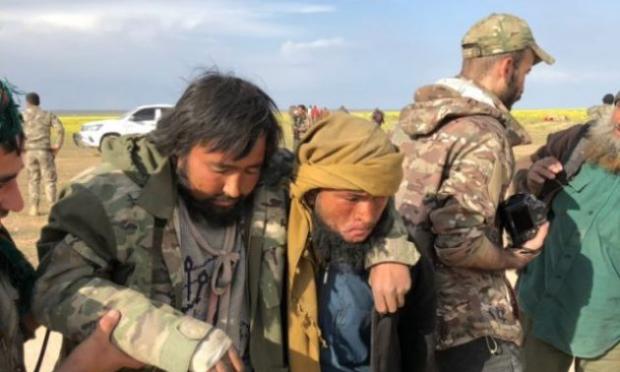 Στην κεντρική φωτογραφία βλέπετε Τουρκομογγόλους, από τις τουρκικές φυλές της κεντρικής Ασίας και της βορειοδυτικής Κίνας, μεταξύ των τζιχαντιστών που παραδίδονται στους Κούρδους.