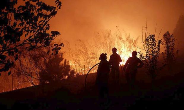 Ελικόπτερα προσπαθούν να κατασβήσουν μια πυρκαγιά σε δάσος κοντά στο χωριουδάκι Γκοντομίλ, στο βορειότερο άκρο της Πορτογαλίας, κοντά στα σύνορα με την Ισπανία. Ένας πυροσβέστης είπε ότι οι επίγειες δυνάμεις περιμένουν να βελτιωθούν οι καιρικές συνθήκες για να επέμβουν.