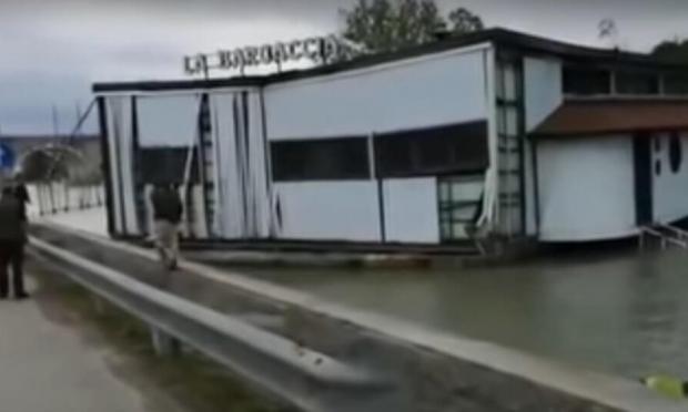 Σφοδρή κακοκαιρία πλήττει τη βόρεια Ιταλία. Θύμα των καιρικών φαινομένων έπεσε κι ένα πλωτό εστιατόριο που παρασύρθηκε από τους ισχυρούς ανέμους!
