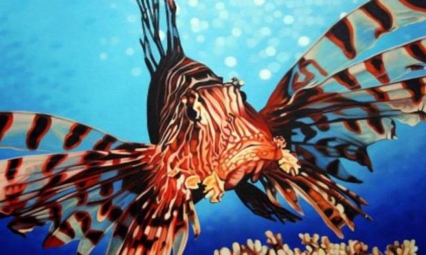 Το λεοντόψαρο (επιστηµονική ονοµασία Pterois miles), το οποίο ενδηµεί στον Ινδικό Ωκεανό, είναι δηµοφιλές έκθεµα τροπικών ενυδρείων, καθώς εντυπωσιάζει µε τους έντονους κόκκινους, κίτρινους και µαύρους χρωµατισµούς, αλλά και την «πανοπλία» του από µυτερά αγκάθια που εκλύουν δηλητήριο. Αυτά αποτελούν τόσο αµυντικό όσο και επιθετικό µηχανισµό, καθώς από τη µία αποτρέπουν δυνητικούς θηρευτές και από την άλλη αιχµαλωτίζουν τα θηράµατα. Η επαφή του ανθρώπου µε τα αγκάθια µπορεί να αποβεί από επώδυνη έως και θανατηφόρα, καθώς υπάρχει κίνδυνος να προκληθεί αλλεργικό σοκ. Το λεοντόψαρο ζει σε θερµά νερά και τα τελευταία χρόνια έχει εισβάλει στη Μεσόγειο. Το γεγονός επιβεβαιώθηκε αρχικά στο Ισραήλ και στη συνέχεια στην Κύπρο, όπου πλέον η παρουσία του θεωρείται µόνιµη, ενώ λεοντόψαρα έχουν αλιευθεί στα νότια παράλια της Τουρκίας και σε ελληνικά νερά, στο Καστελόριζο, στη Ρόδο και αλλού, µε όλο και βορειότερη διείσδυση. Το Καρλόβασι της Σάµου είναι µία από τις βορειότερες περιοχές όπου έχει εντοπιστεί. Η ψαριά επιφύλασσε πάντως και δεύτερη έκπληξη για τον Μ. Μουρίκη, καθώς έβγαλε και έναν µεγάλο λαγοκέφαλο.