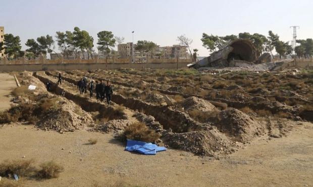 Πέντε από τους νεκρούς που βρέθηκαν στον ομαδικό τάφο ήταν ντυμένοι με πορτοκαλί φόρμες, τις οποίες φορούσαν ορισμένες φορές οι όμηροι των τζιχαντιστών του Ισλαμικού Κράτους, σύμφωνα με τον τοπικό αξιωματούχο Γιάσερ αλ Χάμις και την μη κυβερνητική οργάνωση.