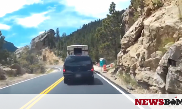 Στο video, το οποίο έχει γίνει viral, ένα αμάξι φαίνεται να απολαμβάνει την μαγευτική διαδρομή στο πανέμορφο τοπίο, όταν το προπορευόμενο όχημα πάτησε ξαφνικά φρένο.