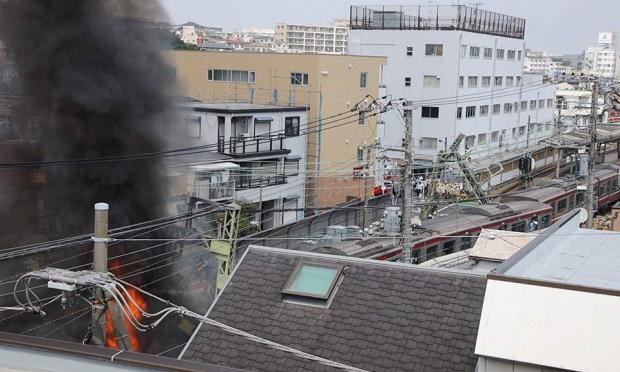 Πλάνα που μετέδωσαν ιαπωνικά ΜΜΕ εικονίζουν μαύρο καπνό να υψώνεται από εκτροχιασμένα βαγόνια του συρμού και ανάστατους επιβάτες που βγαίνουν από το τρένο κοντά σε διασταύρωση των σιδηροτροχιών με το οδικό δίκτυο.