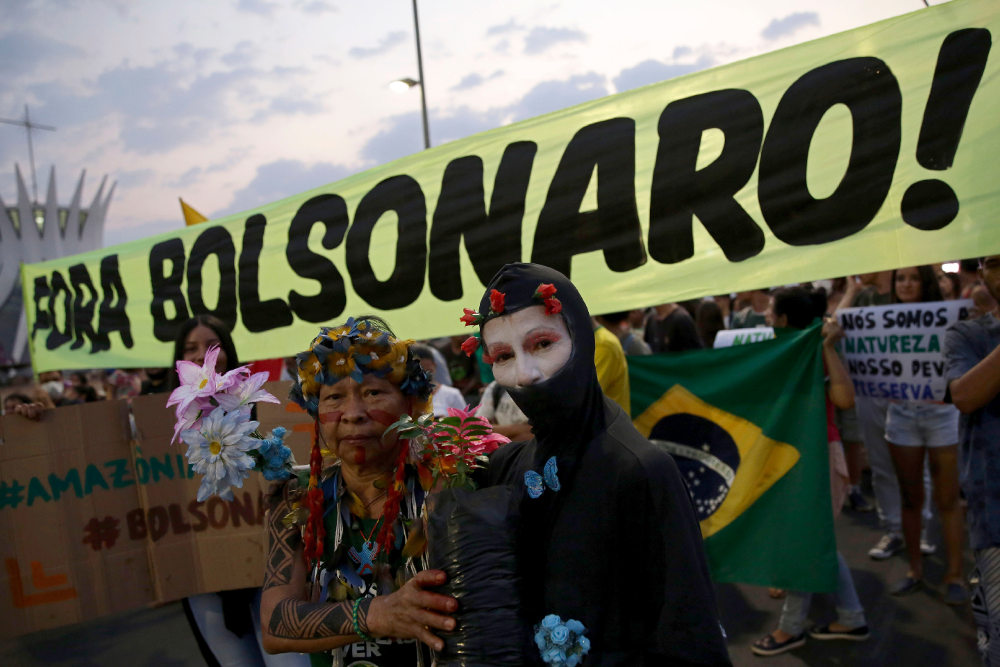 Διαδηλωτές στη Μπραζίλια της Βραζιλίας διαδηλώνουν για την κλιματική αλλαγή και εναντίον του Ζαΐχ Μπολσονάρου