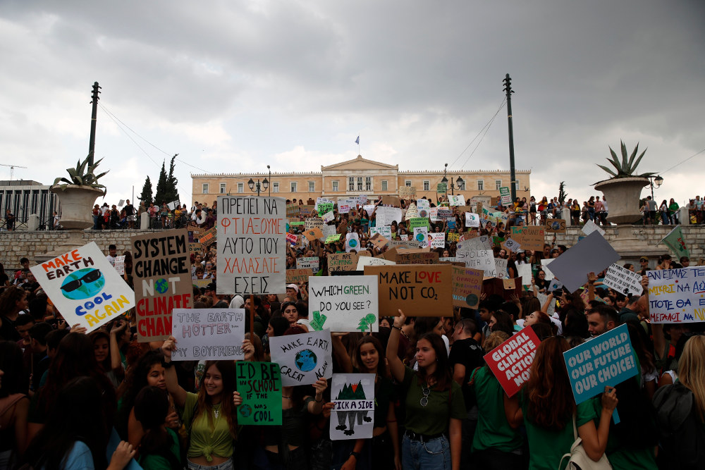 Μαθητές στην Ελλάδα διαδηλώνουν μπροστά στη Βουλή για την κλιματική αλλαγή