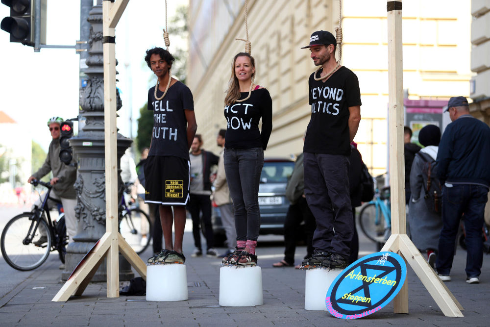 Ακτιβιστές στη Γερμανία διαδηλώνουν κατά της κλιματικής αλλαγής. Με θηλιές και πατώντας σε κομμάτια από πάγο