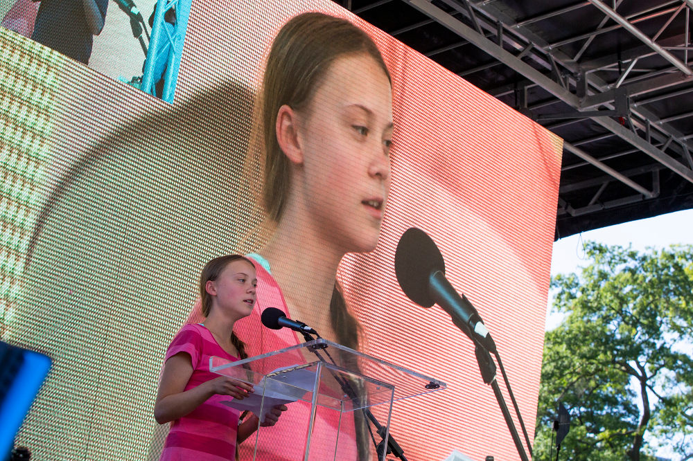 Η Σουηδή Γκρέτα Τούνμπεργκ, το πρόσωπο της παγκόσμιας κινητοποίησης για το κλίμα σε ομιλία της στη Νέα Υόρκη