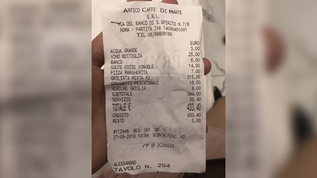 Τα φαινόμενα των παράλογων λογαριασμών που μοιράζονται σε τουρίστες φαίνεται πως δεν είναι ελληνική πατέντα, αφού το νέο περιστατικό έλαβε χώρα σε γνωστό μαγαζί στο κέντρο της Ρώμης, στην Ιταλία.
