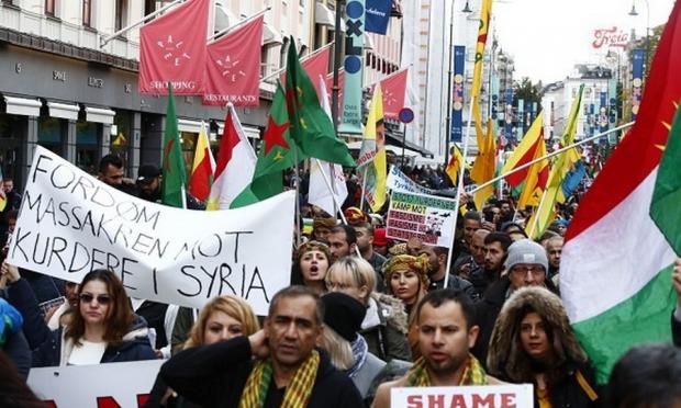 Η μία κινητοποίηση διεξήχθη κατά της τουρκικής επίθεσης και συμμετείχαν σε αυτή μέλη της κουρδικής κοινότητας, με ομάδες διαδηλωτών να κρατούν σημαίες των Κούρδων πολιτοφυλακών YPG.