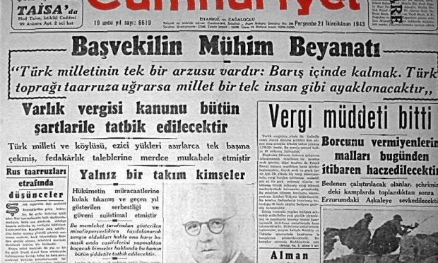 11 Νοεμβρίου 1942: Η τουρκική Βουλή ψηφίζει νόμο που επιβάλλει έκτακτη εισφορά στην κινητή και ακίνητη περιουσία (Varlik vergisi). Ο νόμος αυτός, όργανο φυλετικού διωγμού, στρέφεται κυρίως εναντίον των Ελλήνων, των Εβραίων και των Αρμενίων.