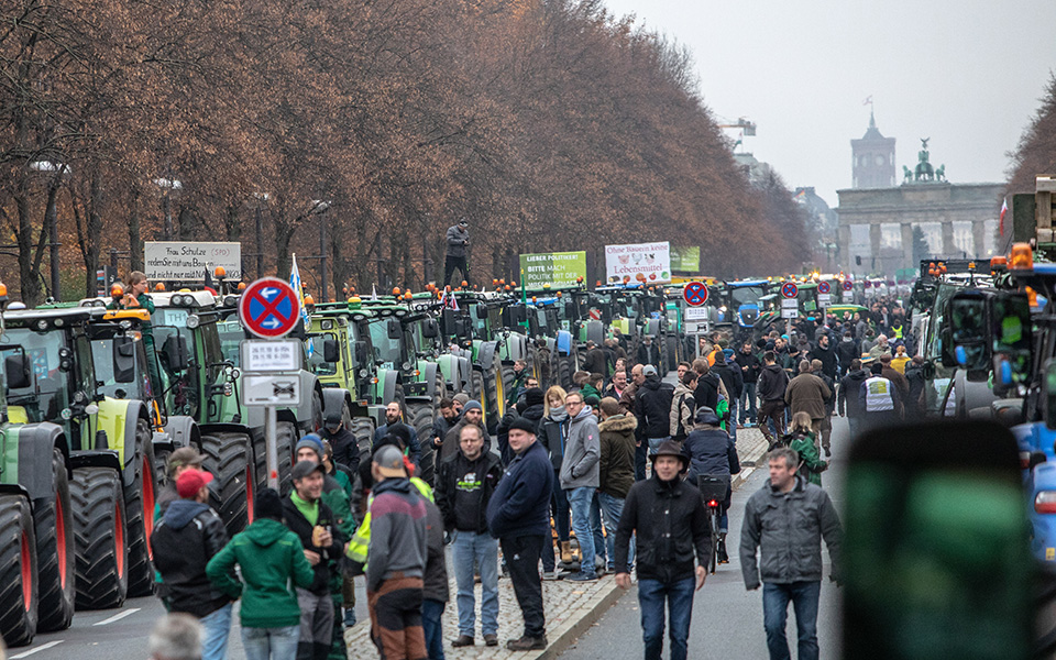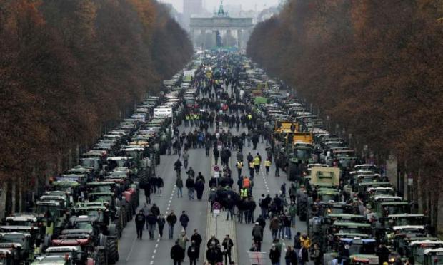 Χιλιάδες τρακτέρ κατευθύνονται σήμερα προς την Πύλη του Βραδεμβούργου, προκειμένου να λάβουν μέρος σε μεγάλη διαδήλωση κατά της δέσμης μέτρων για την αγροτική παραγωγή που παρουσίασε η γερμανική κυβέρνηση.