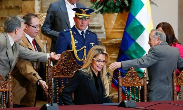 "Η συνταγματική κυβέρνηση της οποίας προεδρεύω αποφάσισε να κηρύξει ανεπιθύμητα πρόσωπα την πρέσβειρα του Μεξικού στη Βολιβία, τη Μαρία Τερέσα Μερκάδο, την επιτετραμμένη της Ισπανίας Κριστίνα Μπορεγκουέρο, τον (Ισπανό) πρόξενο Άλβαρο Φερνάντεθ", είπε στους δημοσιογράφους η Άνιες.