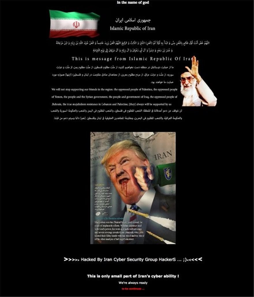 Την Κυριακή κυβερνοεπίθεση εξαπέλυσε μια ομάδα που υποστηρίζει ότι πρόκειται για Ιρανούς χάκερ στην ιστοσελίδα της αμερικανικής κυβέρνησης επιδεικνύοντας τις τεχνολογικές ικανότητες της Τεχεράνης.