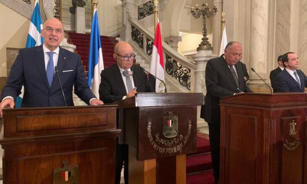 Πραγματοποιήθηκε στο Κάιρο η πενταμερής συνάντηση Αιγύπτου, Γαλλίας, Ιταλίας, Ελλάδας και Κύπρου. Στη συνάντηση πήραν μέρος οι υπουργοί Εξωτερικών της Ελλάδας Νίκος Δένδιας, της Κύπρου Νίκος Χριστοδουλίδης, της Αιγύπτου Σάμεχ Σούκρι, της Γαλλίας Ζαν-Υβ Λε Ντριαν και της Ιταλίας Λουίτζι Ντι Μάιο). Αντικείμενο της ήταν οι εξελίξεις στη Λιβύη, καθώς και η κατάσταση στην Ανατολική Μεσόγειο.
