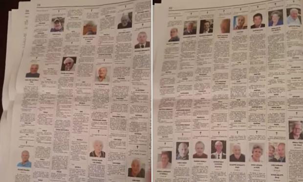 Ενδεικτικό της κατάστασης και συνάμα σοκαριστικό είναι το περιεχόμενο εφημερίδας του Μπέργκαμο με τις αναγγελίες των κηδειών να καλύπτουν πλέον δέκα σελίδες! Είναι χαρακτηριστικό το βίντεο που ανέβασε χρήστης του twitter που δείχνει πως στη διάρκεια του Φεβρουαρίου οι κηδείες στην ίδια εφημερίδα κάλυπταν μόλις μια σελίδα, κι έναν μήνα αργότερα οι κηδείες καλύπτουν δέκα σελίδες καθώς ο αριθμός των νεκρών αυξάνεται δραματικά!