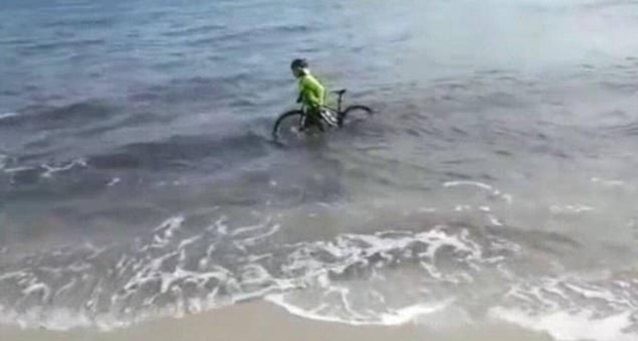 Με το στόμα ανοιχτό έμειναν οι αστυνομικοί που επιχείρησαν να πλησιάσουν έναν ποδηλάτη που απολάμβανε την βόλτα του σε παραλία της Απουλίας στην Ιταλία.