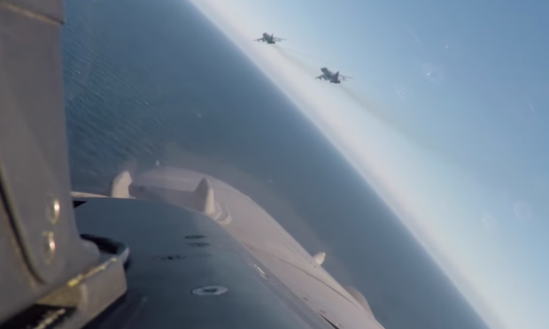 Το ενδιαφέρον είναι πως τα ρωσικά μαχητικά εμφανίζονται να είναι οπλισμένα με πυραύλους αέρος-επιφανείας.