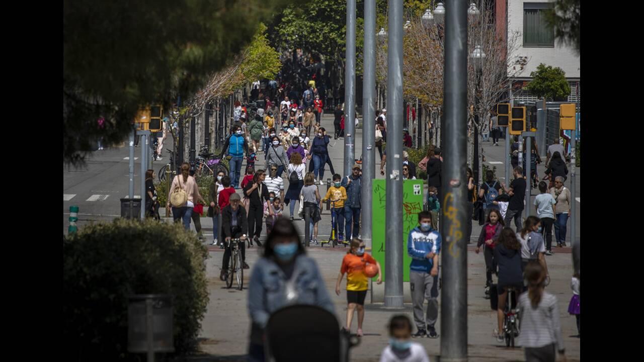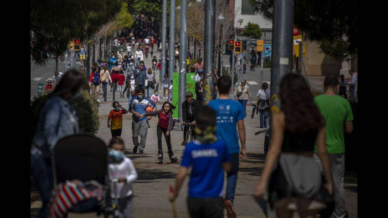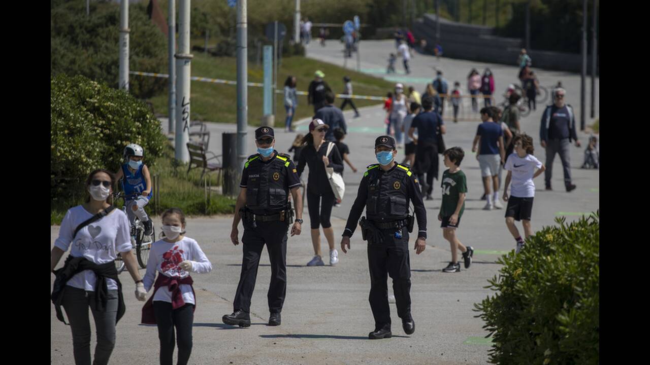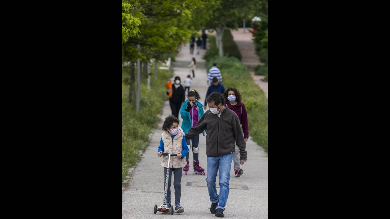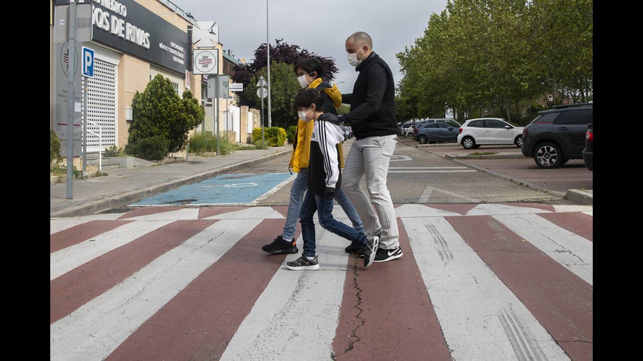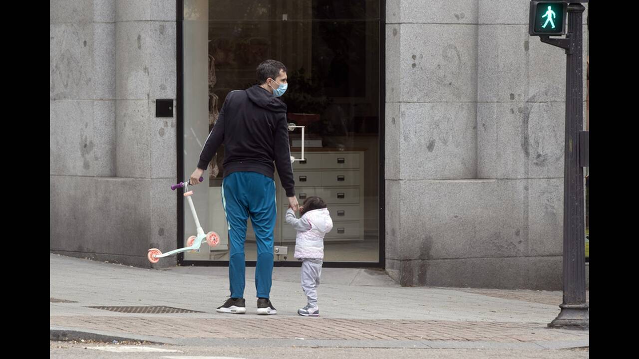 Τα παιδιά ηλικίας κάτω των 14 ετών επετράπη να βγουν έξω για πρώτη φορά από τις 14 Μαρτίου που η κυβέρνηση κήρυξε κατάσταση έκτακτης ανάγκης και επέβαλε μια παύση στη δημόσια ζωή και την οικονομική δραστηρότητα. Παιδιά που φορούσαν προστατευτικές μάσκες έκαναν βόλτες στους δρόμους της Μαδρίτης.