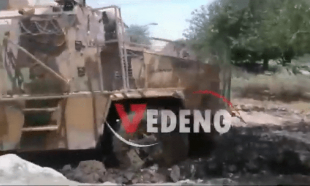 Τουρκικό θωρακισμένο όχημα που κόλλησε στην λάσπη κατά την διάρκεια της κοινής ρωσοτουρκικής περιπολίας κοντά στην πόλη Αλ Μουαμπάντα της επαρχίας Χασέκε της Συρίας.