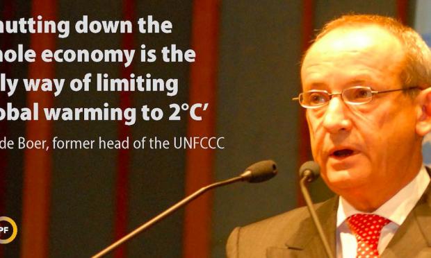 «Ο μόνος τρόπος με τον οποίο μια συμφωνία του 2015 μπορεί να επιτύχει έναν στόχο 2 βαθμών είναι να κλείσει ολόκληρη η παγκόσμια οικονομία», δήλωσε ο Yvo de Boer, πρώην εκτελεστικός γραμματέας της UNFCCC (Σύμβαση-πλαίσιο των Ηνωμένων Εθνών για την Κλιματική Αλλαγή) το 2013.