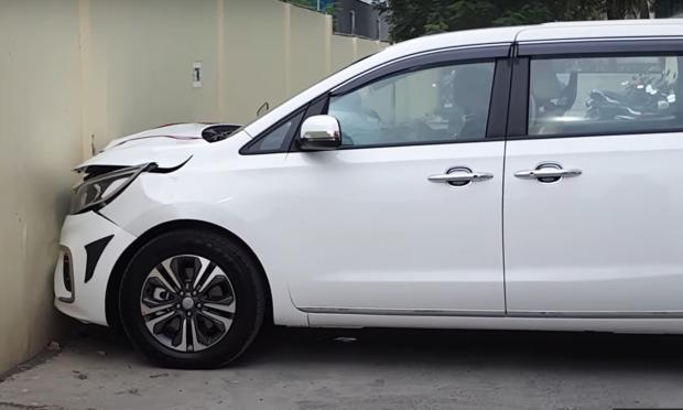 Παρόλο που δεν πρόλαβε να αναπτύξει μεγάλη ταχύτητα, η μάσκα του KIA Carinval παραμορφώθηκε, με προφυλακτήρα και καπό να χρήζουν αντικατάστασης, ενώ άνοιξαν και οι αερόσακοι οδηγού και συνοδηγού. Το αυτοκίνητο που είχε ακόμα τις ζελατίνες στα καθίσματα, παρέμεινε σε λειτουργική κατάσταση και μετά τη σύγκρουση, όμως έχει χάσει πλέον την ομορφιά του.