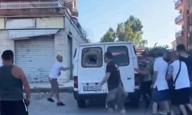 Ένας Βούλγαρος εποχικός εργάτης, παράλληλα, πέταξε καρέκλα από μπαλκόνι της πολυκατοικίας στην οποία βρίσκεται σε απομόνωση, προς την κατεύθυνση του συγκεντρωμένου πλήθους.