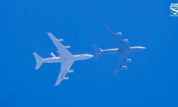 Έτσι έδωσαν φωτογραφίες από τον ανεφοδιασμό στον αέρα ενός E-3A Sentry του ΝΑΤΟ, με νηολόγιο Λουξεμβούργου, από KC-135R της τουρκικής Αεροπορίας πάνω από την Ρουμανία.