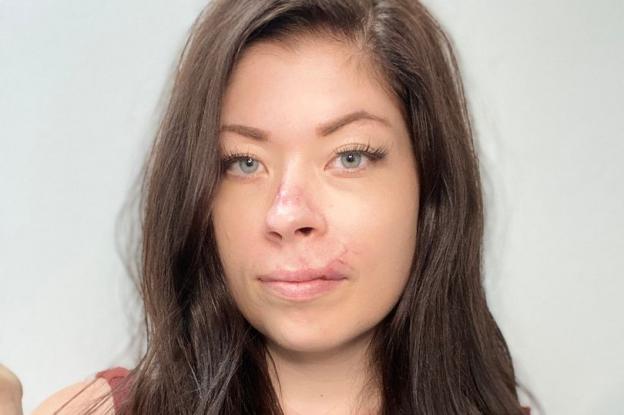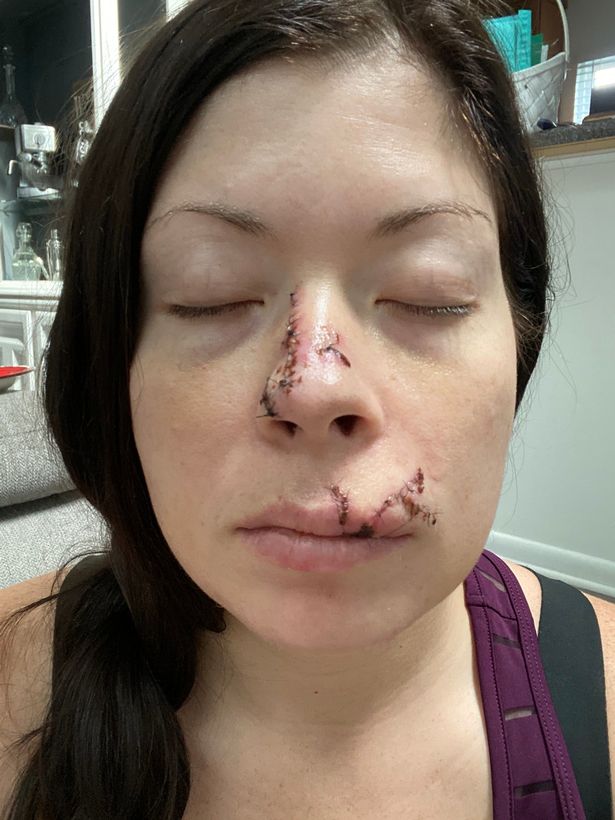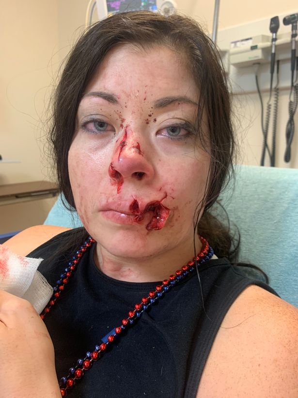Ο πανικοβλημένος σκύλος επιτέθηκε στο πρόσωπο της Amber, προκαλώντας τραγικές πληγές που άφησαν τα χείλη της κατεστραμμένα και τη μύτη της τεμαχισμένη στα δύο.
