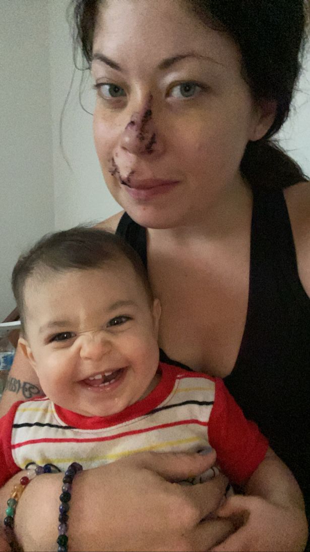 Αφού έφυγε από το νοσοκομείο μετά από ώρες χειρουργικής επέμβασης την επόμενη μέρα, η Amber ανησυχούσε αρχικά ότι οι πληγές της θα τρομάξουν την κόρη της, αλλά μια τεράστια αγκαλιά όταν επέστρεψε στο σπίτι σταμάτησε αυτές τις αμφιβολίες.