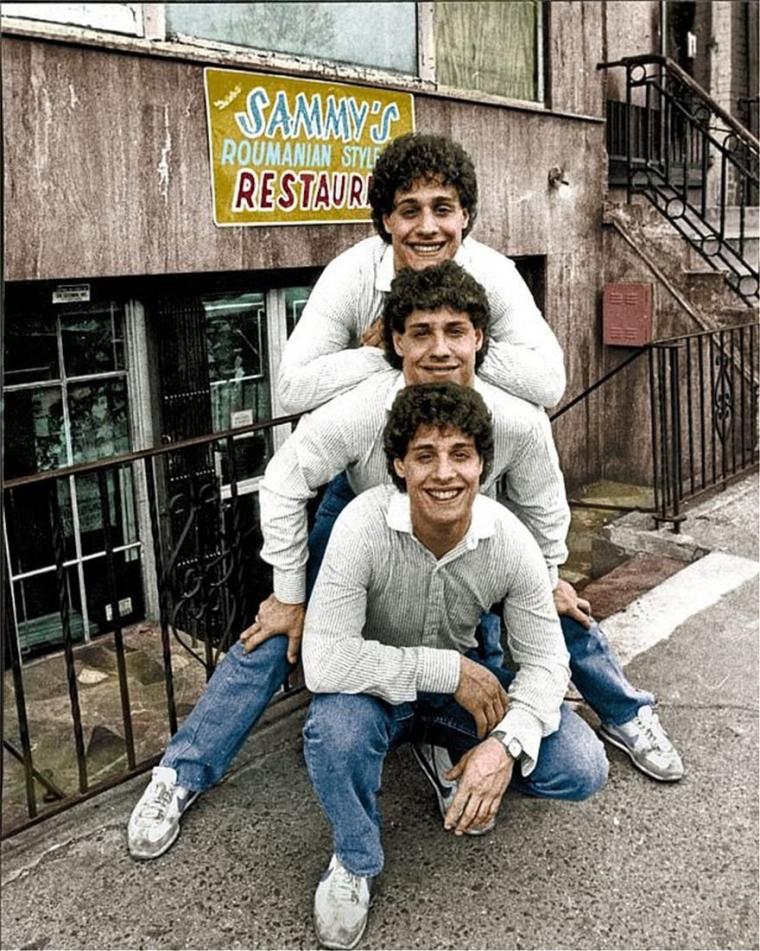 Τα τρία αγόρια είχαν γεννηθεί στο Λόνγκ Άιλαντ και είχαν υιοθετηθεί από τρεις διαφορετικές οικογένειες: Η μία ευκατάστατη, η δεύτερη μεσαίας τάξης και η τρίτη εργατικής τάξης. Η ιστορία τους έγινε ταινία του Netflix το 2018 με τίτλο «Three Identical Strangers». Μόλις ανακάλυψαν την αλήθεια έγιναν αμέσως διάσημοι χάρη στις εξωστρεφείς προσωπικότητές τους και την καλή εμφάνισή τους, ανοίγοντας ακόμη και ένα εστιατόριο με την ονομασία Triplets (Οι τρίδυμοι). Ωστόσο πάλεψαν σκληρά προκειμένου να ανακαλύψουν την αλήθεια για το πώς υιοθετήθηκαν, με τον Έντι Γκάλαντ να αυτοκτονεί το 1995 ύστερα από μάχη με την μανιοκατάθλιψη.