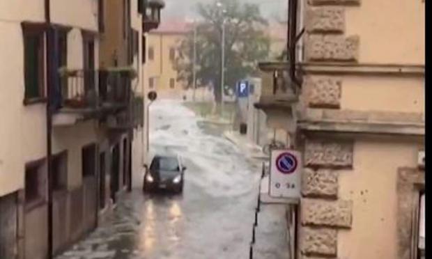 Οι στενοί δρόμοι της πόλης πλημμύρισαν ύστερα από καταιγίδα, ενώ το χαλάζι που έπεσε ήταν τέτοιου μεγέθους που επέπλεε στα σωρευμένα ύδατα σχηματίζοντας εικόνα... μικρών παγόβουνων.