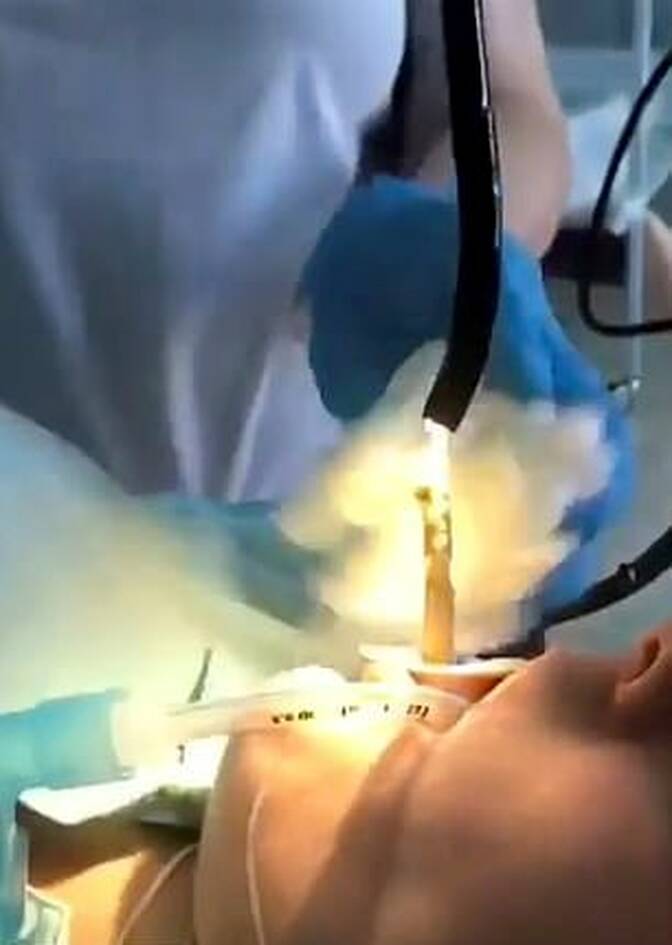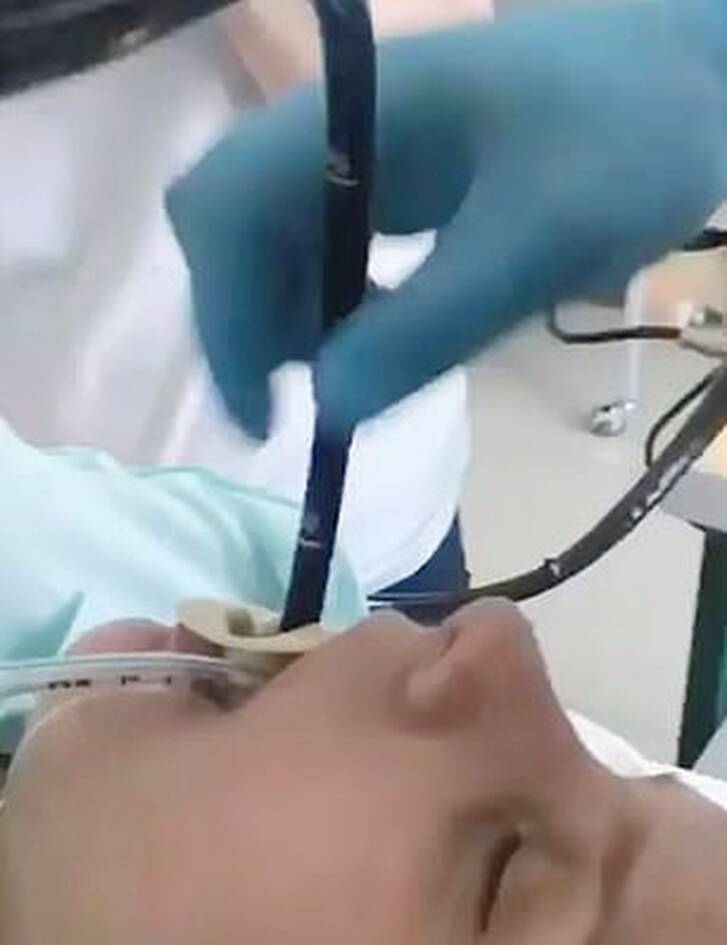 Όπως μπορείτε να δείτε και στο βίντεο και τις φωτογραφίες, η γυναίκα βρίσκεται αναίσθητη σε κρεβάτι χειρουργείου και ο γιατρός κατάφερε να πιάσει το φίδι και να το τραβήξει από το στόμα της.