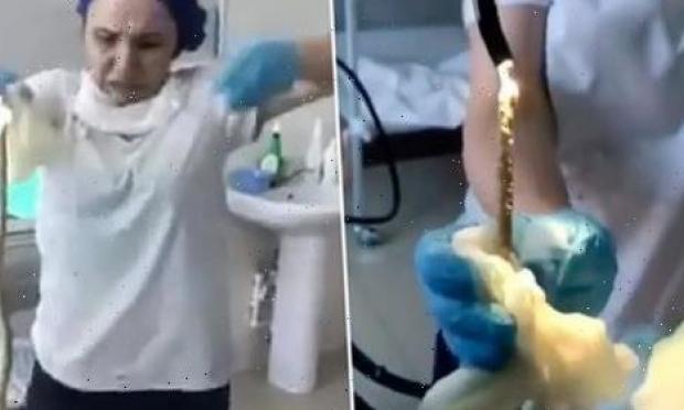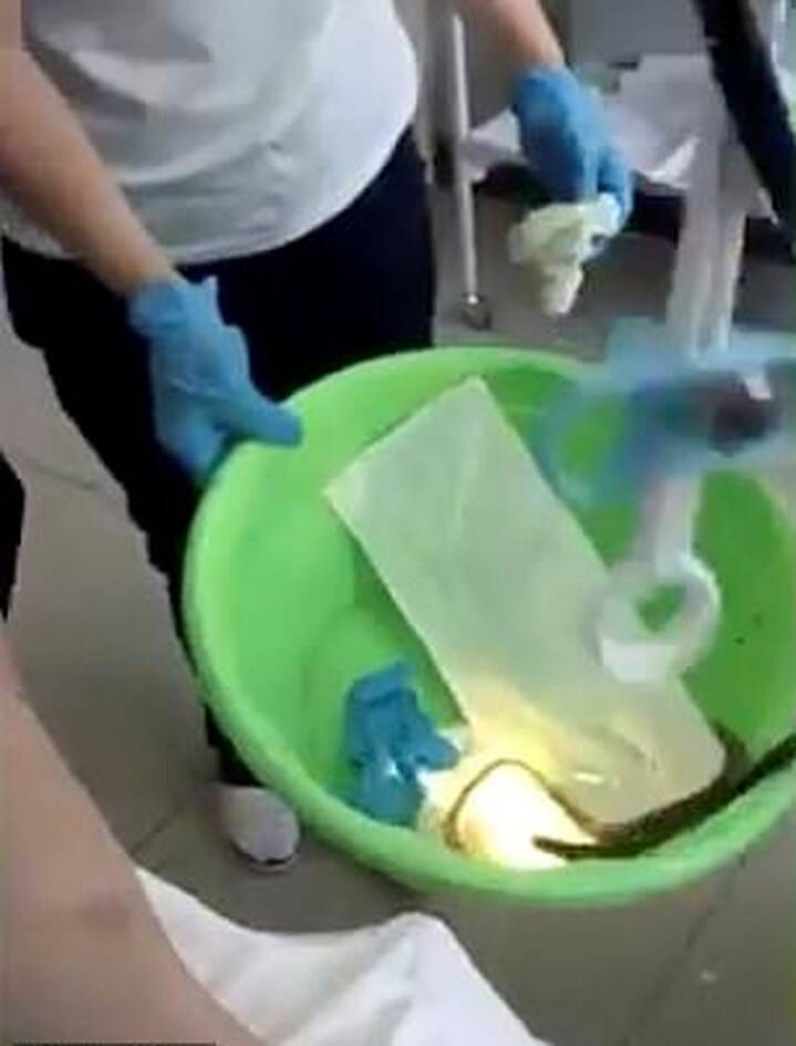 Στο βίντεο, μία νοσοκόμα εμφανίζεται να τραβάει το ερπετό, μήκους 1,5 μέτρου, έχοντας μια έκφραση αηδίας στο πρόσωπό της. Πάντως, πολλοί ήταν αυτοί που έσπευσαν να χαρακτηρίσουν ως ψεύτικο το υλικό που δημοσιεύτηκε στα social media.