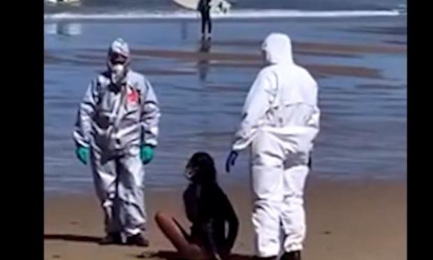 Όμως δεν ήταν η τυχερή της ημέρα. Το πρωτόκολλο για αυτές τις περιπτώσεις ενεργοποιήθηκε και εμφανίστηκαν αρκετές περιπολίες στην παραλία, συμπεριλαμβανομένου ενός προστατευόμενου ατόμου με εξοπλισμό PPE, ο οποίος ήταν αυτός που διατηρούσε την πλησιέστερη επαφή με τη 19χρονη.