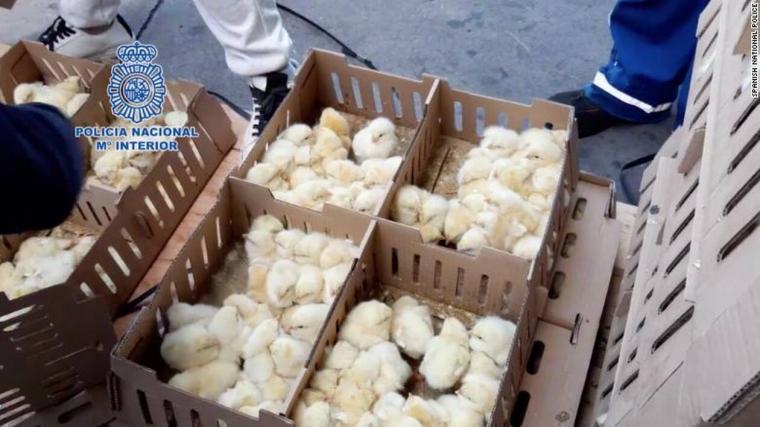 Στο σύνολό τους μέσα στα κουτιά βρέθηκαν 26.000 κοτοπουλάκια, εκ των οποίων τα 6.000 είχαν ήδη πεθάνει μέχρι την ώρα που έφτασαν οι αστυνομικοί στο σημείο. Όσα ήταν ακόμα ζωντανά, υπέφεραν από υποθερμία και προσπαθούσαν να επιβιώσουν τρώγοντας τα απομεινάρια των νεκρών πτηνών δίπλα τους.