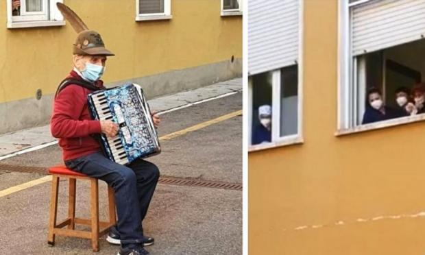 Η εικόνα του 81χρονου Στέφανο Μποτζίνι να παίζει το ακορντεόν του στον δρόμο, κάτω από το παράθυρο του δωματίου της γυναίκας του στο νοσοκομείο της περιοχής Καστέλ Σαν Τζιοβάνι, έκανε πριν από μερικές εβδομάδες τον γύρο του κόσμου προκαλώντας βαθιά συγκίνηση.