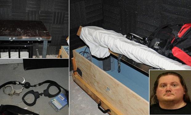 Εκεί είχε βρεθεί ένα σιδερένιο κλουβί κι ένα αυτοσχέδιο φέρετρο σε παιδικό μέγεθος, νυστέρια μιας χρήσης, σετ μαχαίρια χασάπη και εργαλεία ευνουχισμού, καθώς κι ένας ψυγειοκαταψύκτης.