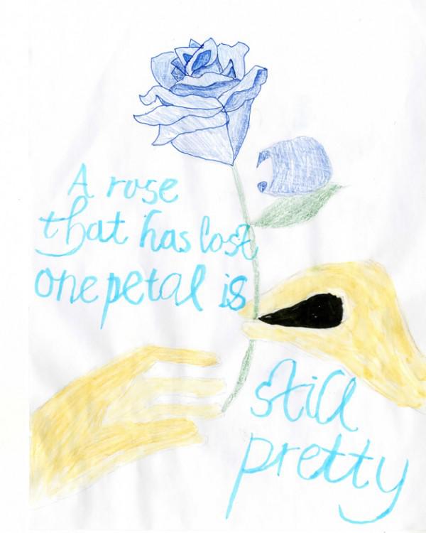 3.Η ζωγραφιά μου αφορά την ιστορία μιας κυρίας που έχασε το πόδι της σ’ένα ατύχημα αλλά ποτέ δεν έχασε το πάθος της για το χορό.Με το τεχνητό της πόδι έκανε εξάσκηση,πήρε μέρος σε διαγωνισμό και την επευφήμησε το ακροατήριο όρθιο στον τελευταίο γύρο.’’Αντιτάγια Γκούπτα,10 χρονών από Νόιντα ,Ινδία.