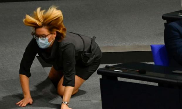 Μια εξαιρετικά άτυχη στιγμή είχε η υπουργός Γεωργίας της Γερμανίας μέσα στο κοινοβούλιο, όταν στραβοπάτησε και βρέθηκε στο πάτωμα.