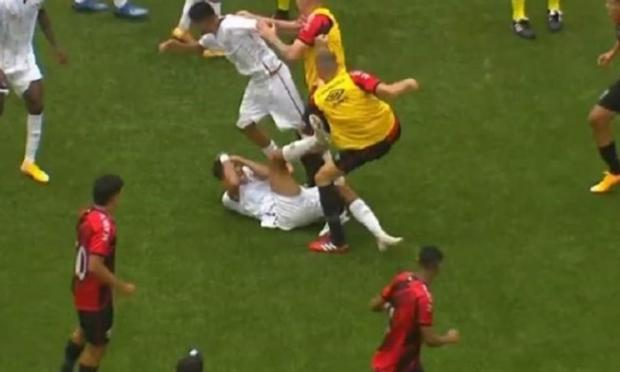 Εικόνες που δεν χωρά ο ανθρώπινος νους, κάνουν τον γύρο του κόσμου από αγώνα επιπέδου κάτω των 17 ετών στη Βραζιλία, αφού ένα σκληρό φάουλ στο κέντρο του γηπέδου, οδήγησε σε σύρραξη.