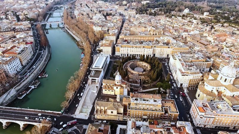 Αεροφωτογραφία της Ρώμης όπου διακρίνεται το κυκλικό Μαυσωλείο του Αυγούστου