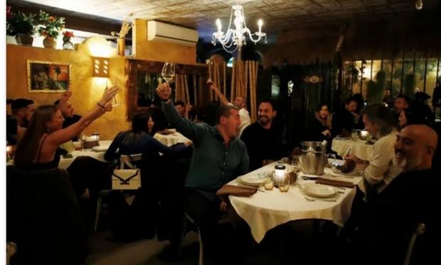 Η διάθεση σε ένα κατάστημα στο Μιλάνο ήταν εορταστική, με τους θαμώνες να τραγουδούν και να χορεύουν χωρίς μάσκες ο ένας δίπλα στον άλλο.