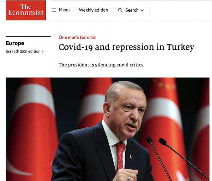 Σ΄ ότι αφορά στην αντιμετώπιση της πανδημίας ο Economist γράφει ότι “σύμφωνα με το υπουργείο Υγείας, ο ιός σκότωσε πάνω από 23.000 άτομα στην Τουρκία…Ο πραγματικός αριθμός μπορεί να είναι τουλάχιστον διπλάσιος”.