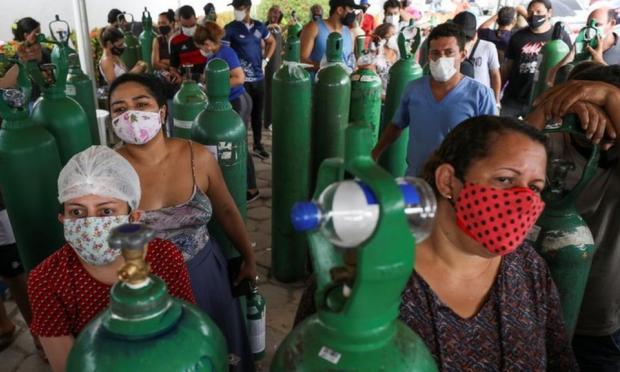 Στο Περού, οι άνθρωποι δημιουργούν μεγάλες ουρές έξω από εργοστάσια οξυγόνου για αρκετές ημέρες.