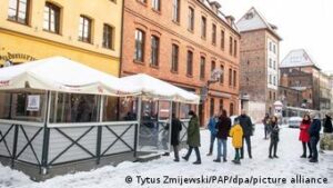Λίγο μετά τις 8 το βράδυ η μπυραρία PiwPaw στο κέντρο της Βαρσοβίας έχει γεμίσει κόσμο. Οι σερβιτόροι πηγαίνουν γρήγορα από τη μια παρέα στην άλλη. «Διαθέτουμε 40 διαφορετικά είδη μπύρας», περηφανεύεται ο Μίχαλ Μάτσιαγκ ιδιοκτήτης της δημοφιλούς μπυραρίας. Δεν φορά μάσκα, όπως άλλωστε και όλοι οι πελάτες.