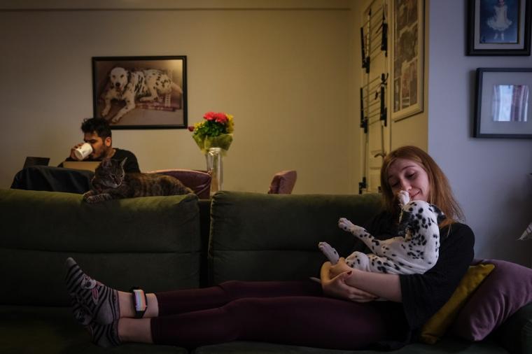 Η φοιτήτρια του Πανεπιστημίου της Κωνσταντινούπολης Asli Altinok, ποζάρει με την σκυλίτσα της Λάικα και το βραχιολάκι στον αστράγαλο