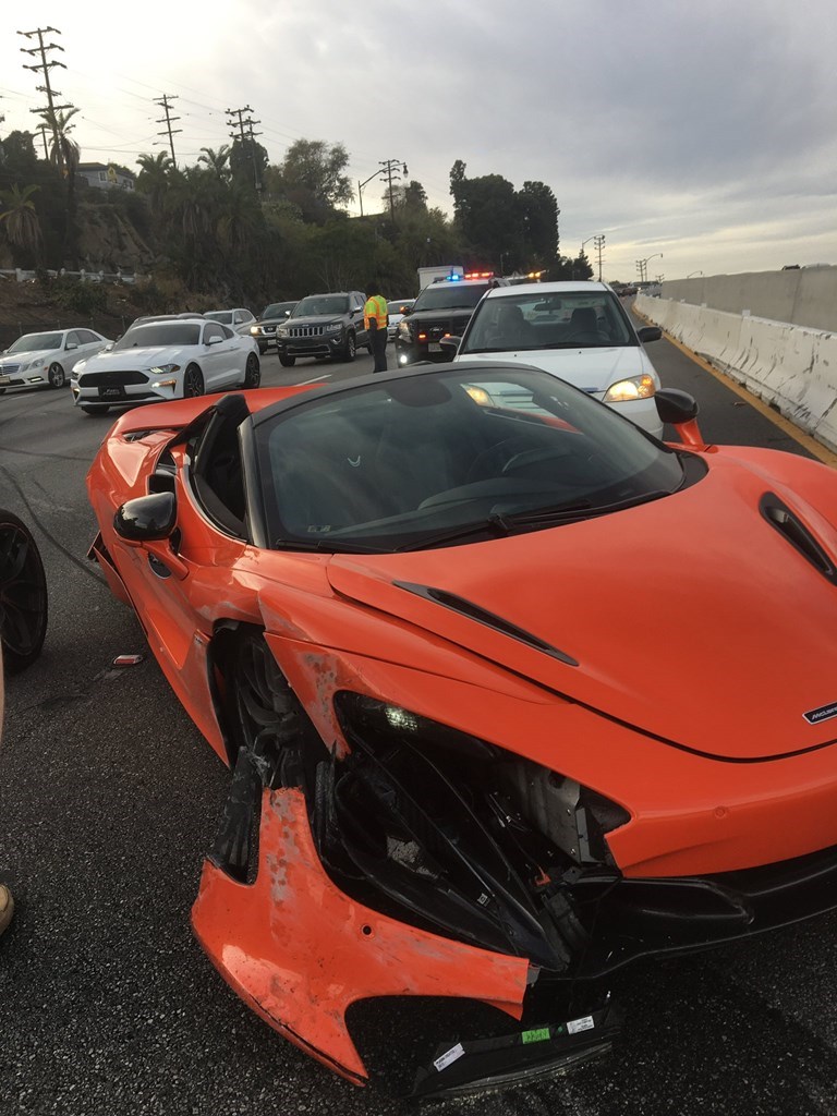 Θαμπωμένος από τα θέλγητρα της πανίσχυρης 720S θέλησε να αποδείξει στους υπόλοιπους οδηγούς πόσο γρήγορος είναι. Στον αυτοκινητόδρομο US-101 έκανε κόντρα με μια Lamborghini Huracan Spyder. Έχασε όμως τον έλεγχο του αυτοκινήτου, αυτό περιστράφηκε και χτύπησε με δύναμη στα προστατευτικά τσιμεντένια τοιχία.
