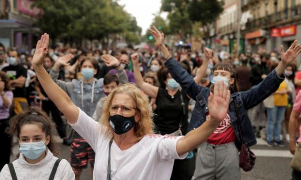 Τον περασμένο χρόνο, λίγες ημέρες πριν από την επιβολή μιας πολύ αυστηρής καραντίνας, είχαν συμμετάσχει στη διαδήλωση στη Μαδρίτη περισσότεροι από 100.000 άνθρωποι και τρία μέλη της κυβέρνησης, που είχαν επίσης δώσει το «παρών», είχαν διαγνωστεί λίγο μετά θετικοί στον ιό.